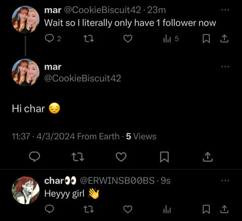 hi i'm char, i go by she/her and i'm bisexual. i'm australian but i'm an exchange student living in france for the moment! je parle français mais, c'est pas trés trés bon. last time i checked i was an ENFP 8w7! i am on twitch 24/7 i live there. PLEASE DON'T MAKE ME GET A JOB!!!